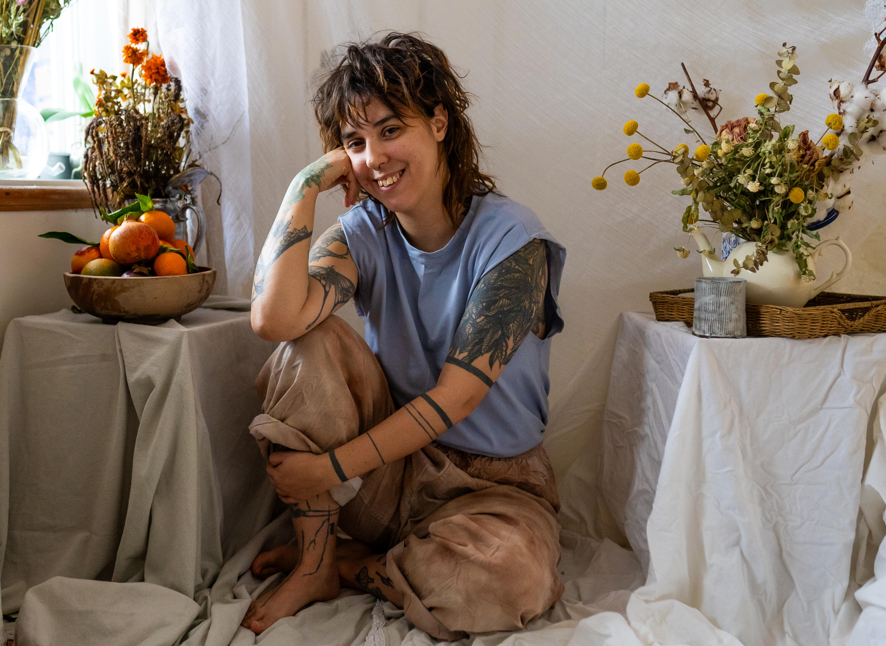 Tanya Dolbec is a yoga teacher and movement artist whose practice is rooted in the spiritual exploration of the body, imagination, and alignment. Certified in Yoga, Yin Yoga and hold a degree in dance choreography and in spiritual studies, she offers a sensitive, attentive, and inclusive approach to yoga, drawing inspiration from somatic, transcendental movements and contemporary dance postural alignment techniques, where each practice becomes a space for connecting the body, soul, and mind.As a multidisciplinary artist, Tanya has been practicing photography for 13 years, as well as visual arts, culinary art, linocut printing and floral art.Fascinated by the sensitive dimensions of bodily experience and the impact of movement on the mind, Tanya creates spaces where the sacred and inner transformation meet.
